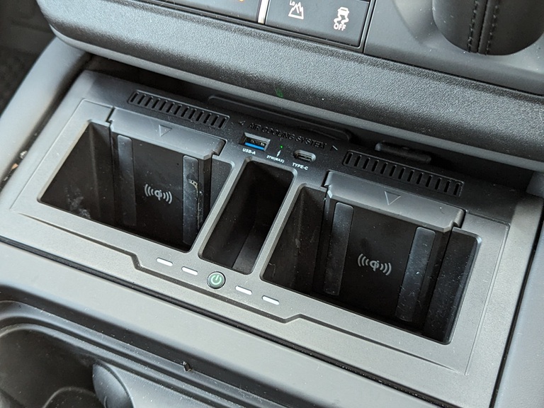 電子制御エアサスペンションを設定(90はオプション、110は標準装備)することで、標準高に対して40㎜低い車高から145㎜高い車高まで設定することができる。また、最大渡河水深は900㎜を実現し、3Dサラウンドカメラとウェイドセンシングが水深の把握をサポートする。